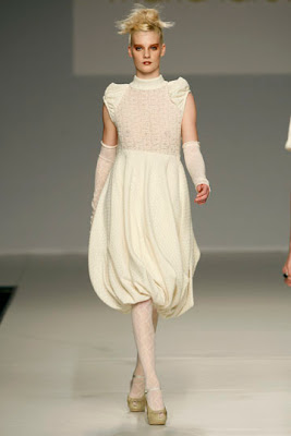 Con un comienzo algo 'Mad Max' –corsé de piel de coco sobre ‘leggins’ con aplicaciones de plumas bajo un enorme echarpe de punto de red que ha paseado Marina Pérez-, las prendas de la leonesa se han ido exhibiendo sobre una pasarela resbaladiza hasta piezas de noche en gasa y vestidos en verde de tejido deshilachado. En el ínterin, un poco de todo: pantalones ‘jodhpur’, abrigos de piel, aplicaciones de ‘paillettes’, monos ochentenos de brillante lúrex e, incluso, propuestas masculinas. La joven diseñadora ha visto como su labor ha sido recibida con indiferencia por parte de la prensa especializada.ver más acá